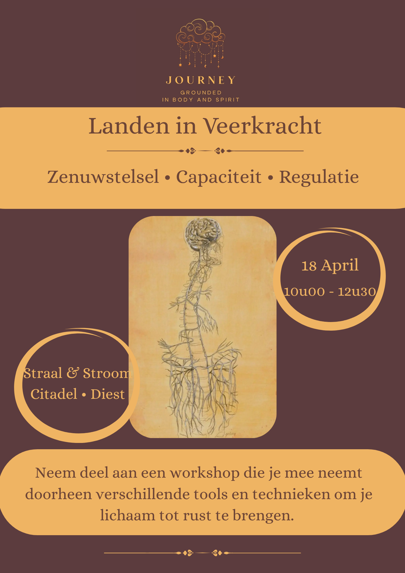 Lichaamsgerichte workshop die je mee neemt doorheen verschillende tools en technieken om je lichaam tot rust te brengen.